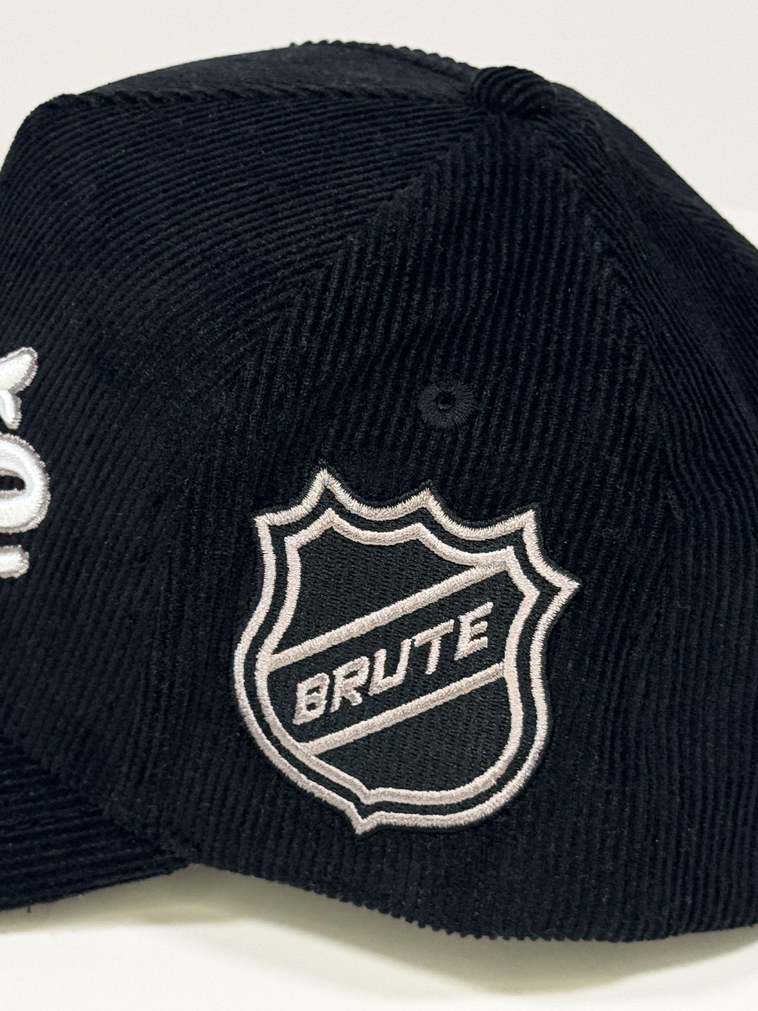 Designed for the ultimate fan, the Brute "NHL" Staple Hat is a must-have accessory. With a versatile black & white colorway and corduroy material, it easily matches any outfit. The adjustable snapback and curved brim provide a comfortable and customizable fit. Plus, the premium embroidery adds a touch of class to show off your team spirit.